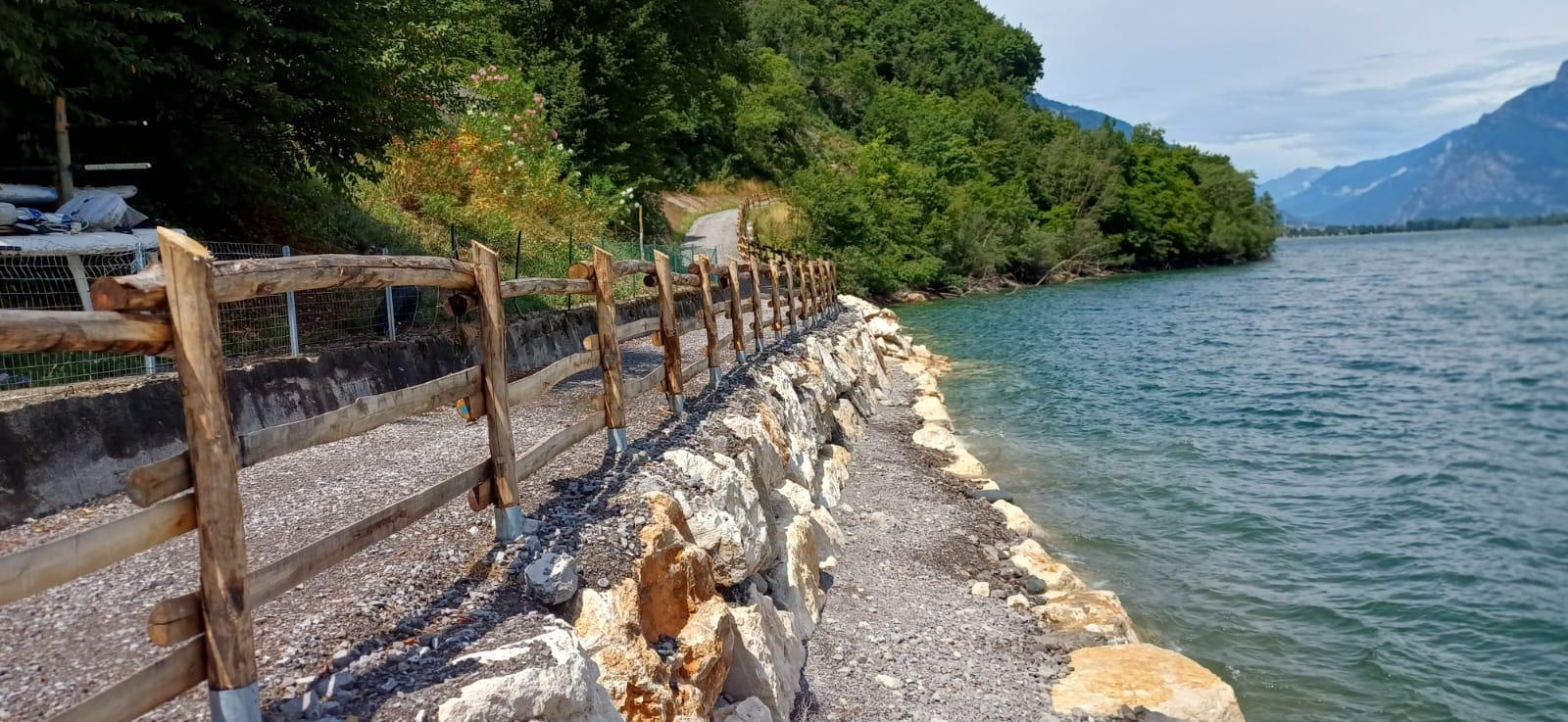 Op het privé-terrein ‘Villaggio San Antonio’ staan in totaal 11 vakantiehuizen, op ruime afstand van elkaar. Het terrein ligt niet ver van de doorgaande weg, waardoor de omliggende dorpen makkelijk te bereiken zijn. Binnen enkele minuten wandelt u over de eigen weg naar het meer, waar zich een kleine privé-baai met kiezelstrand (grootte afhankelijk van de hoogte van het water) voor de huurders bevindt. Op de kade is ruimte voor een (kite)surfplank. Het water is helder en fris en wordt snel dieper (let op met jonge kinderen!).